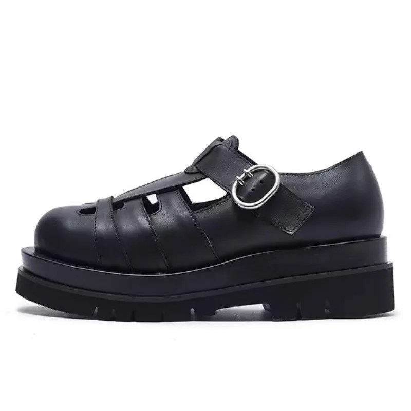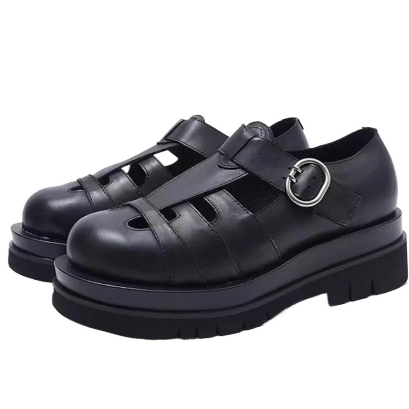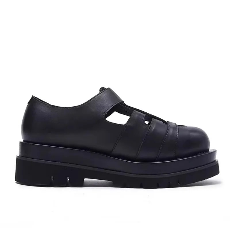 Premium Genuine Leather – First-layer cowhide upper with hand-woven hollow-out design for durability and ventilation.