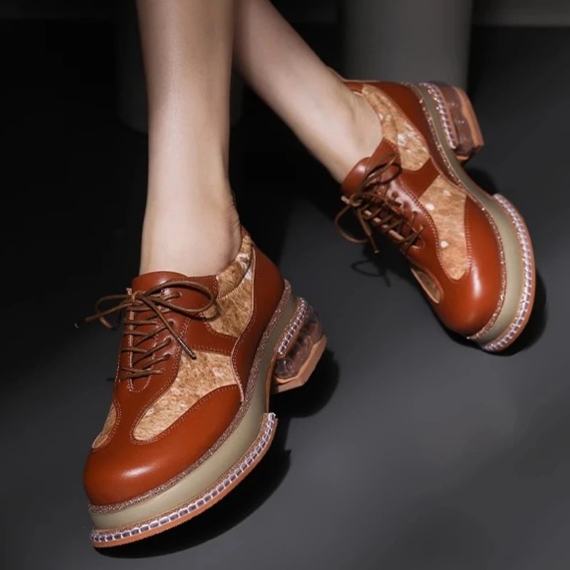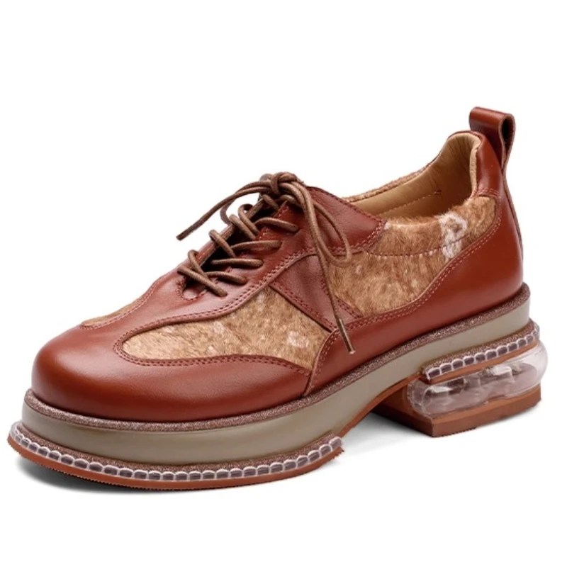 UnityPuremax™ Retro Street Horsehair Mesh Sneakers – Women’s Genuine Leather Thick Sole Casual Shoes