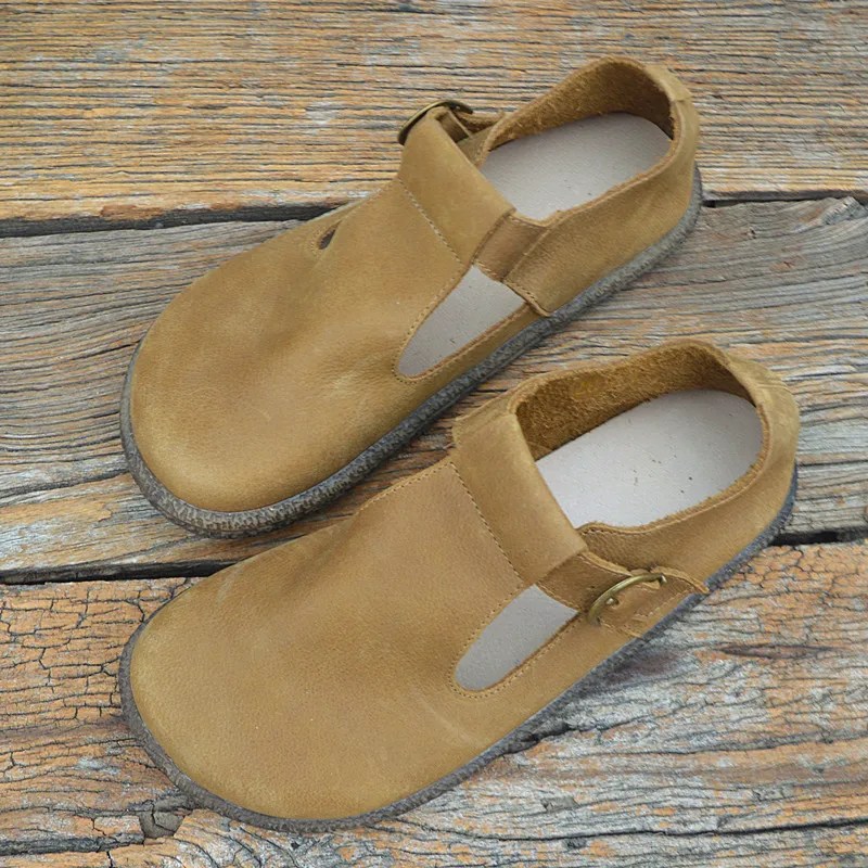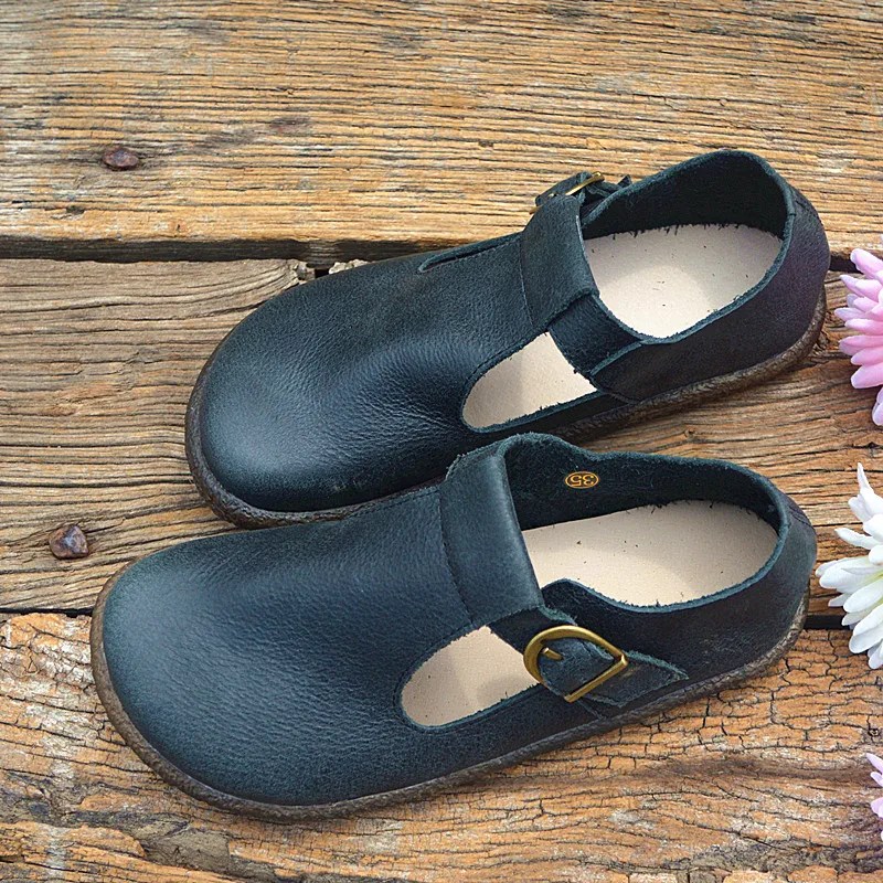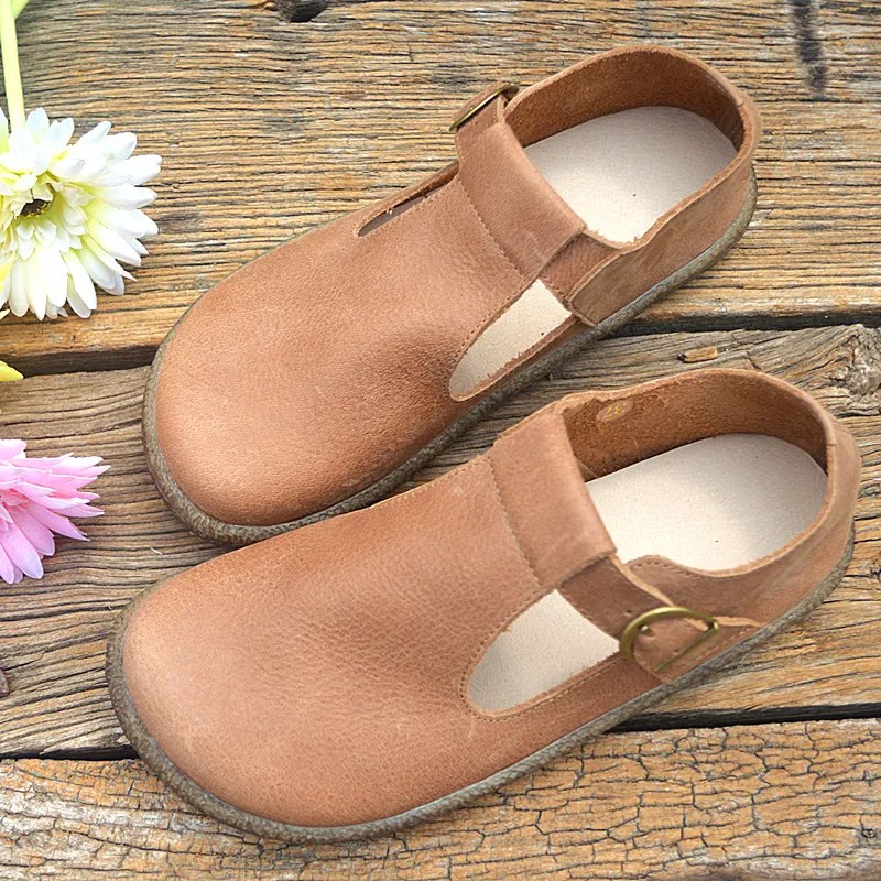 Step into timeless elegance with these handmade genuine leather T-strap flats – Cowhide Leather Flats, crafted from top-quality cowhide and designed for the discerning woman. Featuring a vintage-inspired buckle strap and minimalist flat bottom, these shoes combine traditional craftsmanship with modern sensibility—ideal for everyday casual or understated formal wear in spring and autumn.