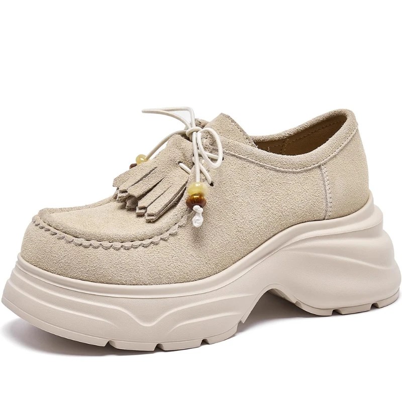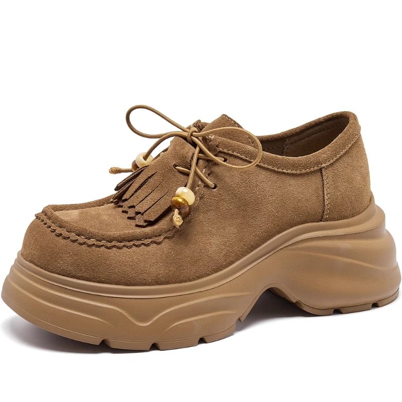 retro loafers, women’s thick sole shoes, leather height increasing shoes, tassel loafers, casual leather sneakers