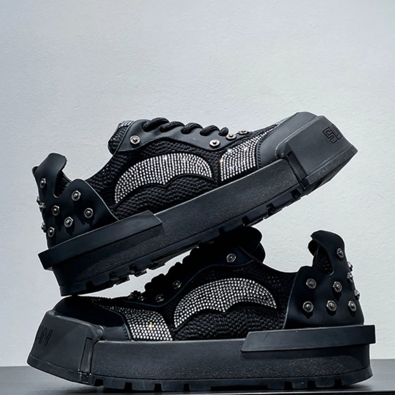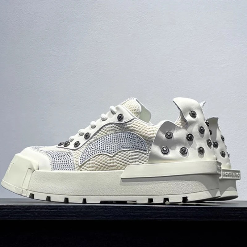 RivetCraft Retro Bread Shoes, men’s height increasing sneakers, cowhide mesh rivet shoes, UNITYPUREMAX casual shoes, thick sole streetwear shoes, European American retro sneakers