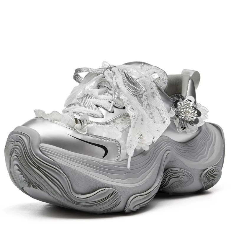 Trendy Silhouette: Daddy shoe design with playful “sweet wind” style.