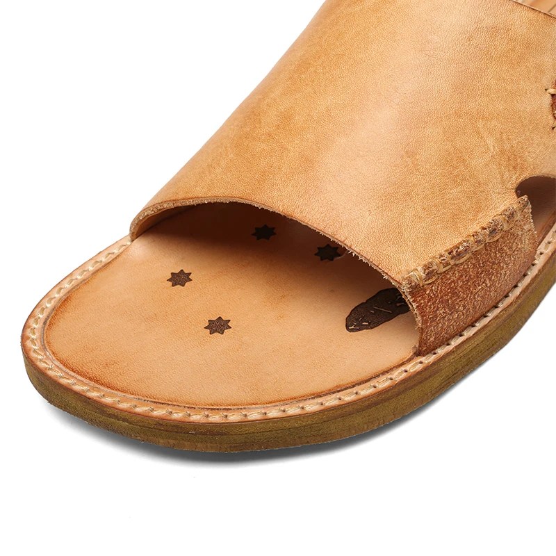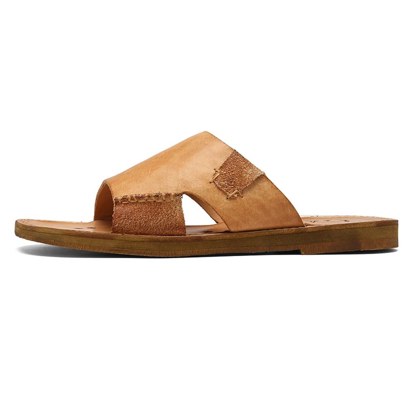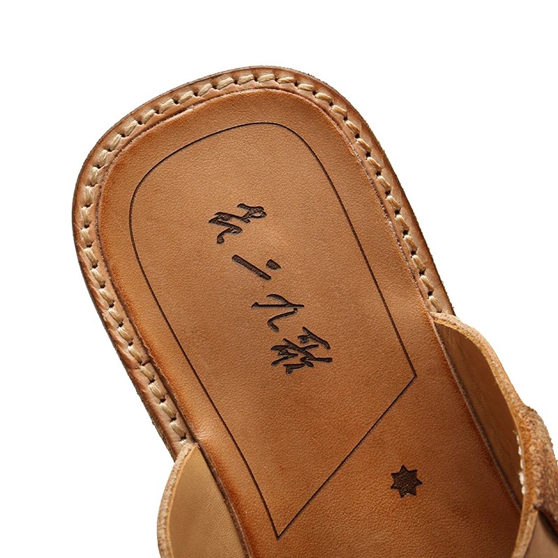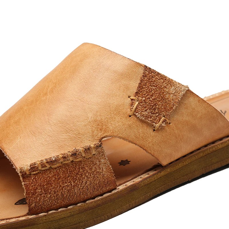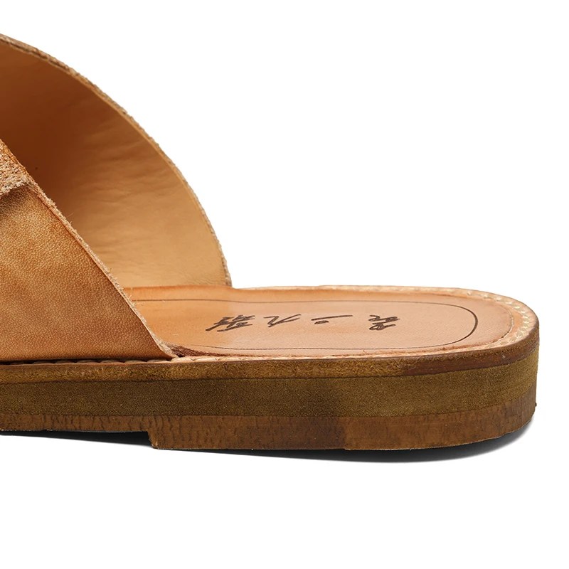 Men’s Retro Calf Leather Slide Slippers – Handmade Calf Leather Slide Sandals