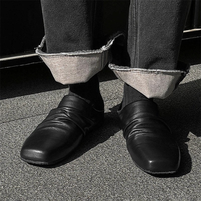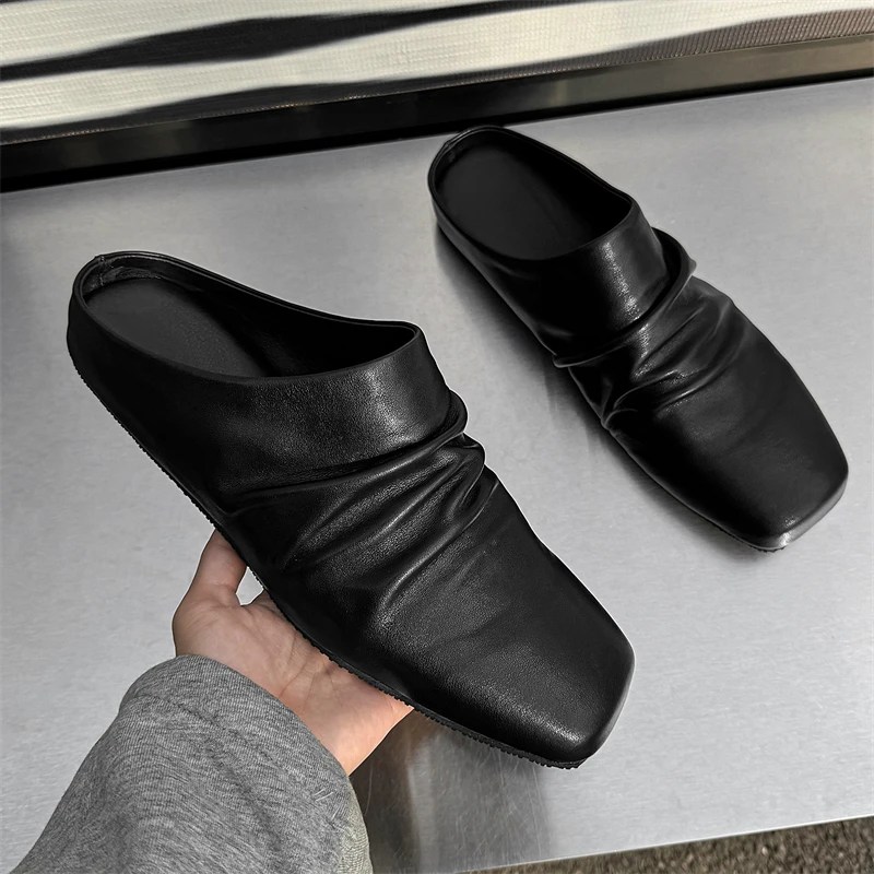 pleated leather half shoes men, men’s backless casual mules, semi-drag loafers, summer slip-on PU shoes, men’s outdoor mule slides, StrideEase™ men slippers, PU leather loafers for men, men’s flat half shoes