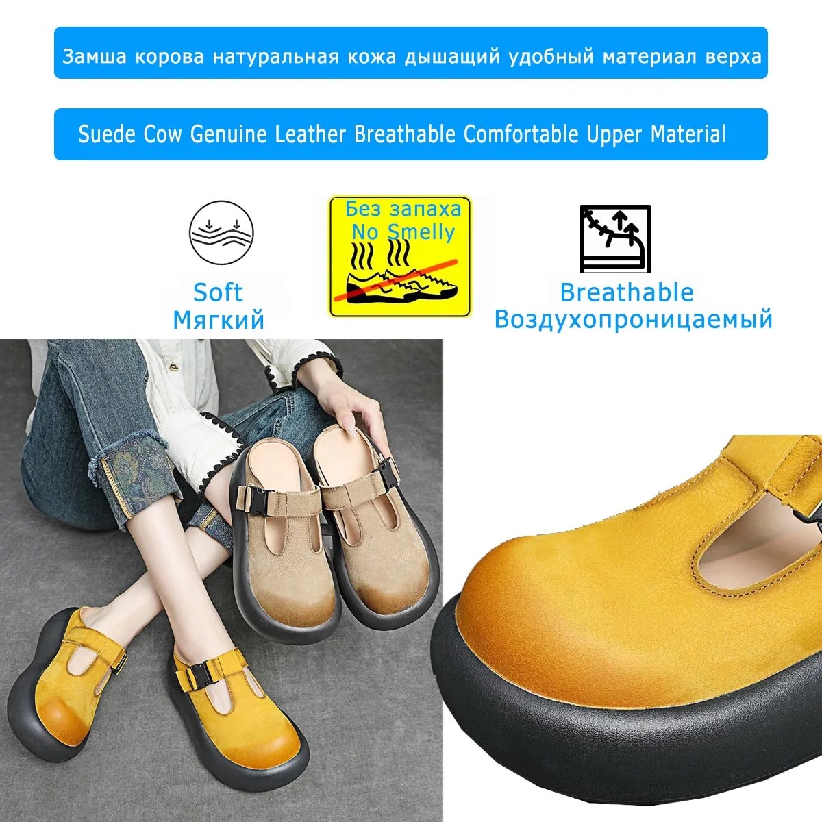 A: Yes – the genuine cow suede upper is soft against skin, and the EVA insole adds comfort.