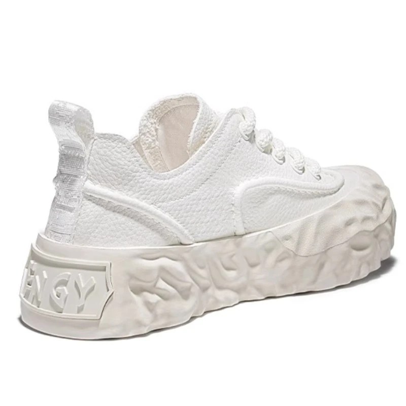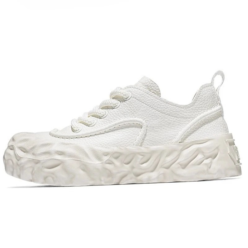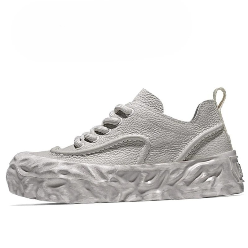 Designed with a durable thick rubber sole and hidden height-increasing structure, they deliver elevated confidence without compromising comfort. The breathable genuine leather lining ensures freshness throughout the day, while the hand-sewn stitching adds a refined, luxury touch. Available in black, white, and gray, these versatile sneakers pair effortlessly with any wardrobe.