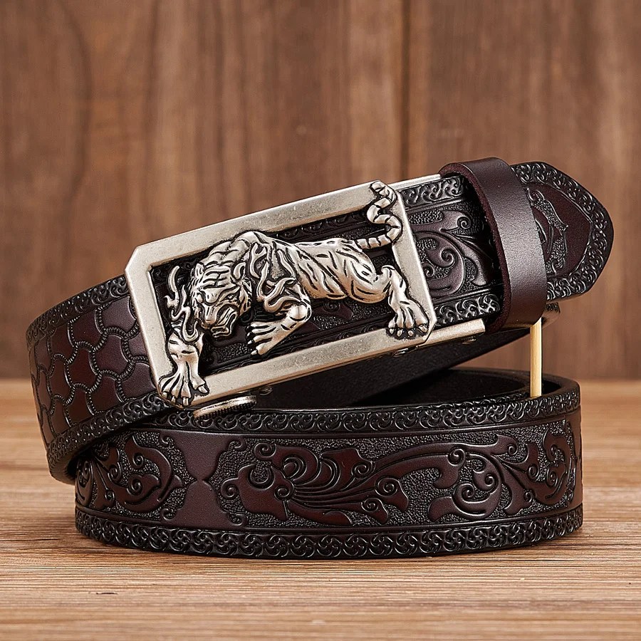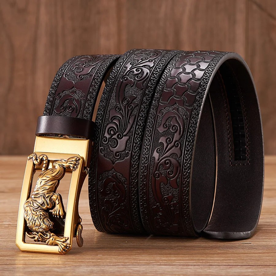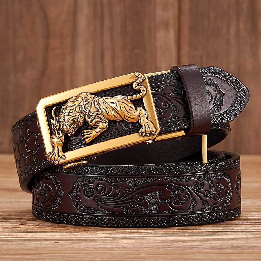 ARTFORCE™ 3.5CM Tiger Buckle Leather Belt – Tang Grass Pattern & Automatic Buckle for Men