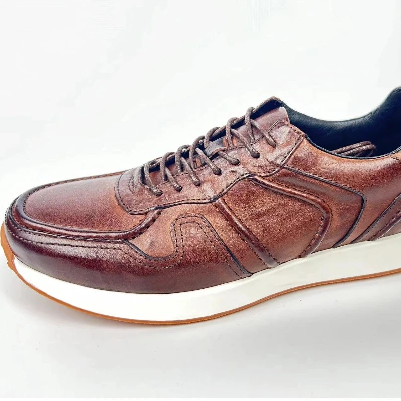 These sneakers are designed for those who value individuality and craftsmanship. The distressed leather finish evolves over time, developing a deeper patina unique to your wear. Unlike mass-produced footwear, the handmade construction ensures durability with character. Lightweight yet structured, they provide everyday comfort while elevating your casual wardrobe with understated vintage luxury.
