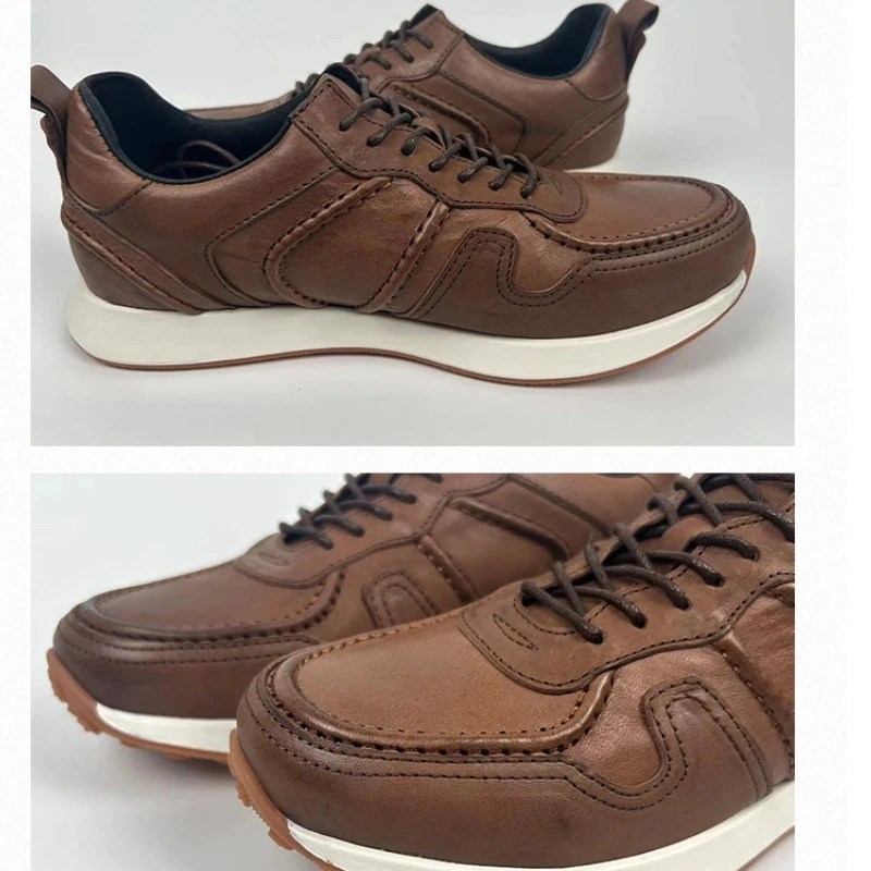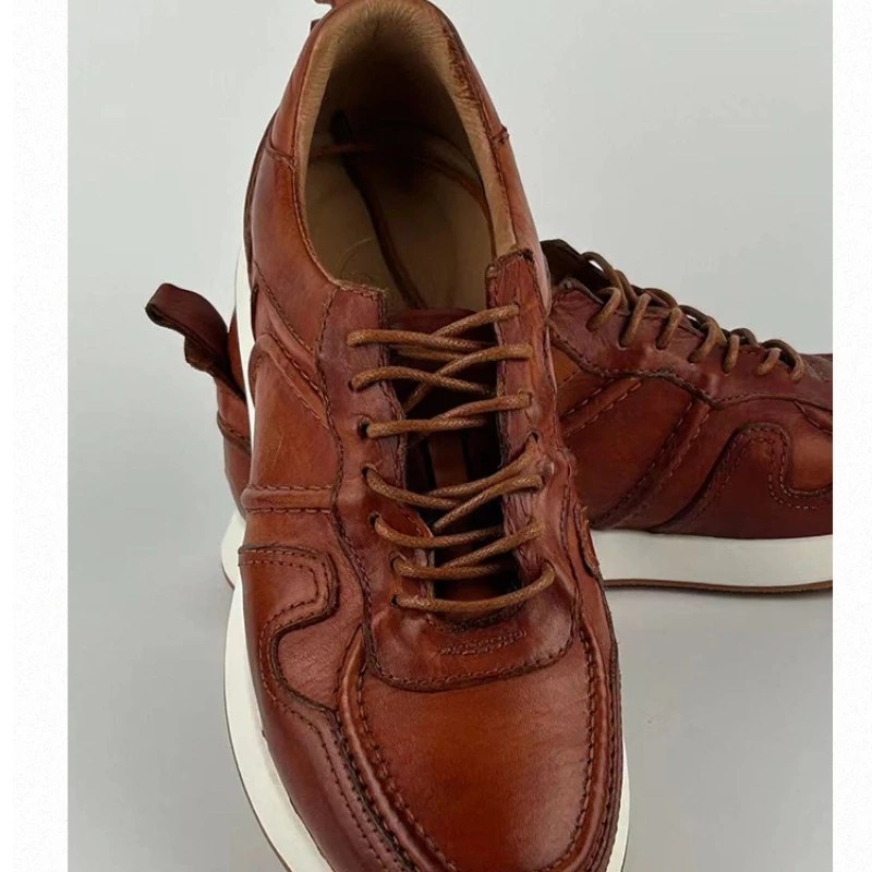 mens distressed leather sneakers, vintage leather sneakers men, handmade leather trainers men, retro low top sneakers men, washed leather shoes men, breathable casual sneakers men, UNITYPUREMAX sneakers