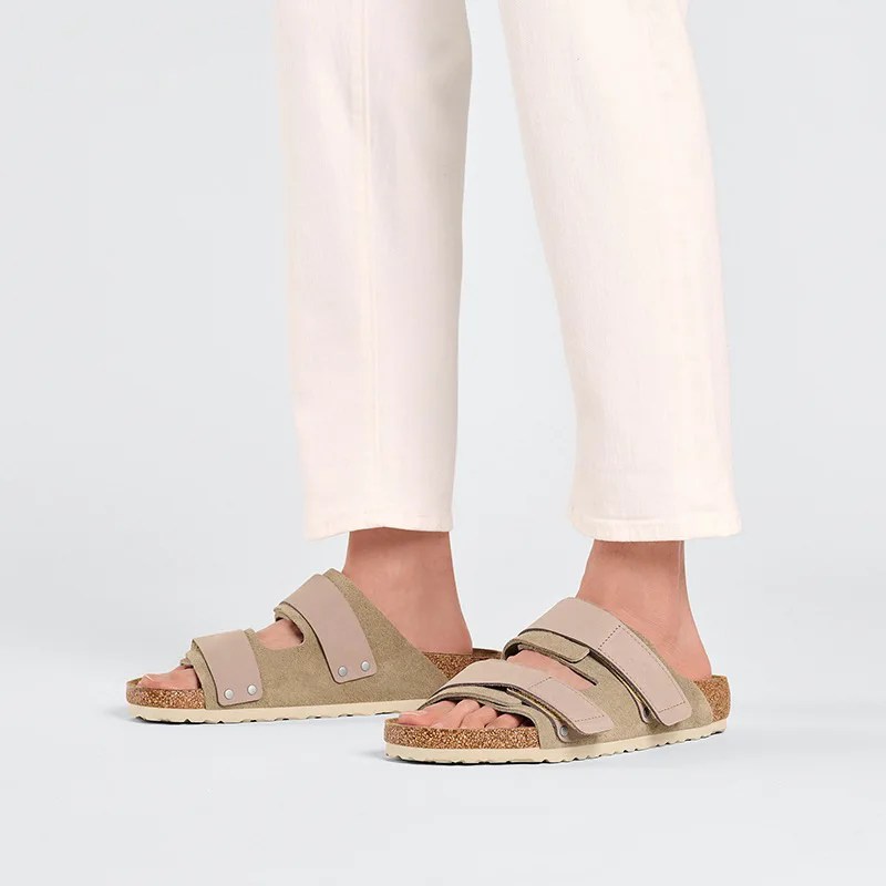 They are best suited for spring and autumn, but breathable suede and cork make them comfortable indoors year-round.