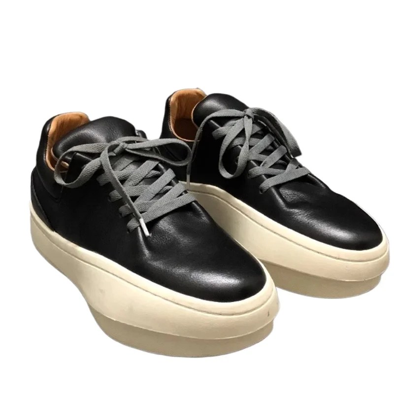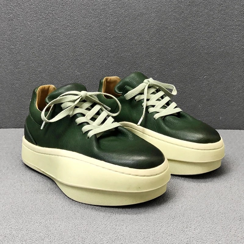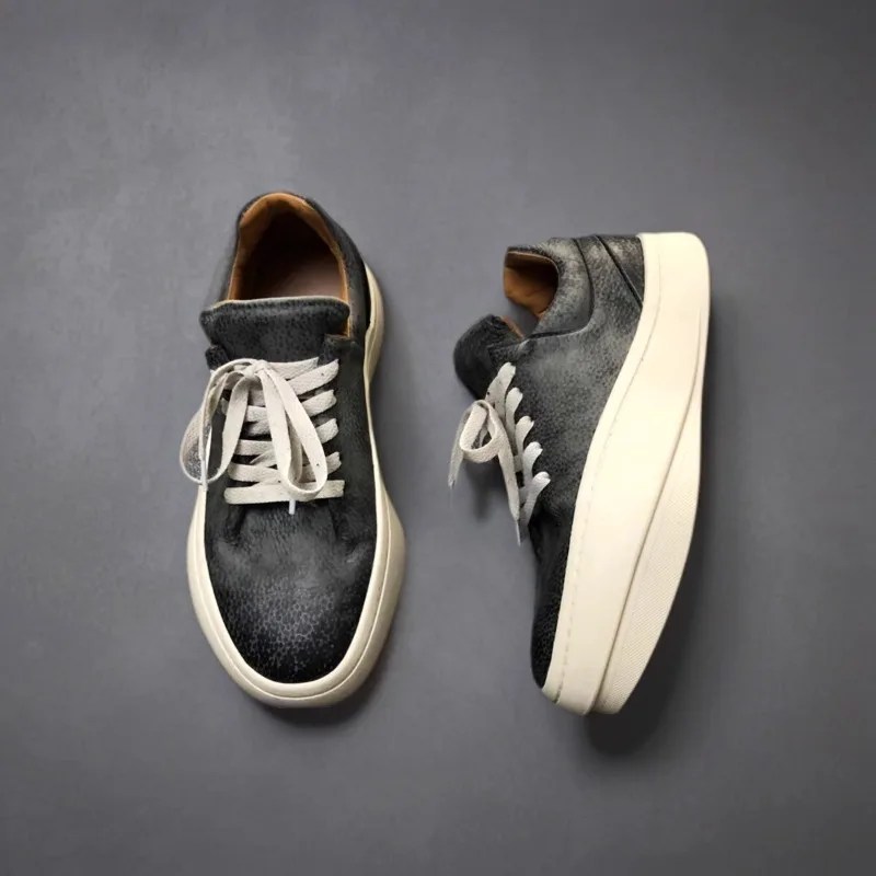 Whether you’re dressing down in jeans or adding a relaxed edge to officewear, these lace-up “bread-style” sneakers feature clean lines, a round toe, and a thick rubber outsole for traction. Available in four earthy tones—black, soot, apricot brown, and dark green—they fit true to size and are tailored for both young and middle-aged men.