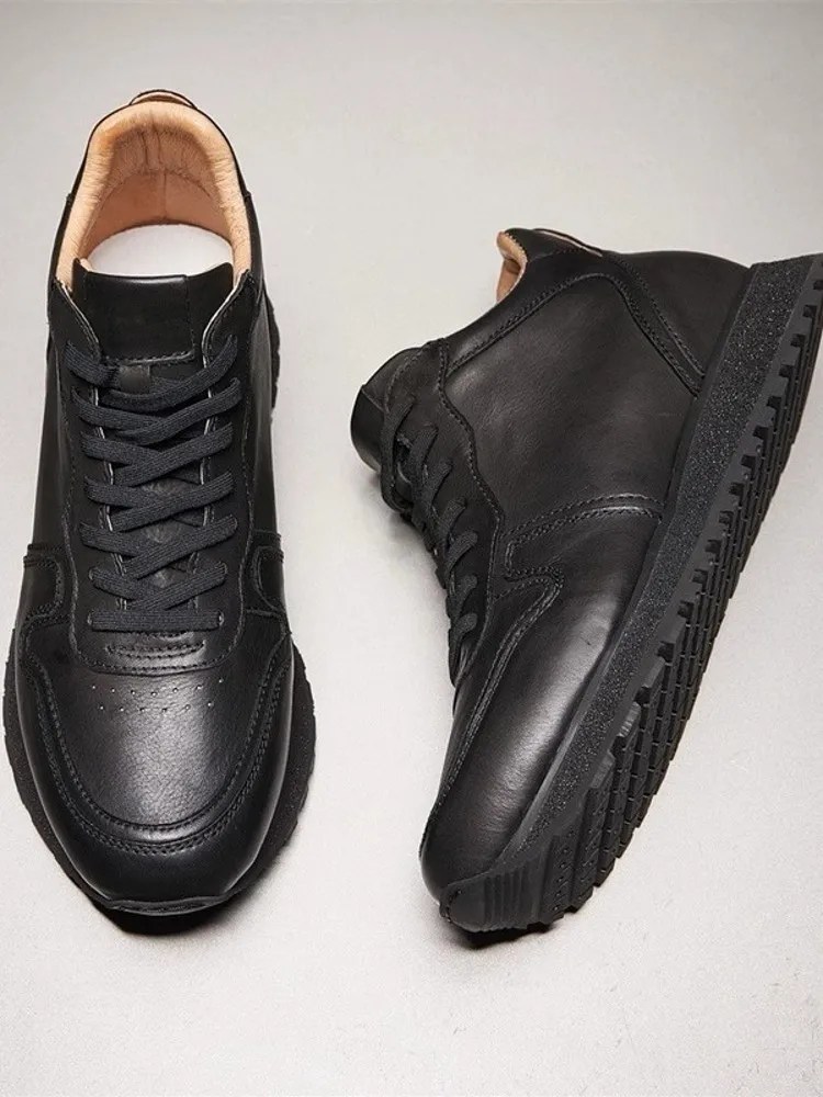 Mens Genuine Leather Winter Running Sneakers Fleece Lined Anti-Skid Platform Shoes | UNITYPUREMAX™