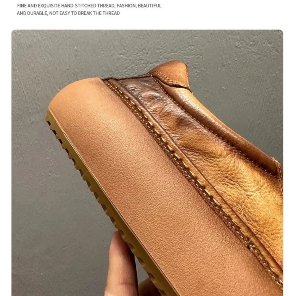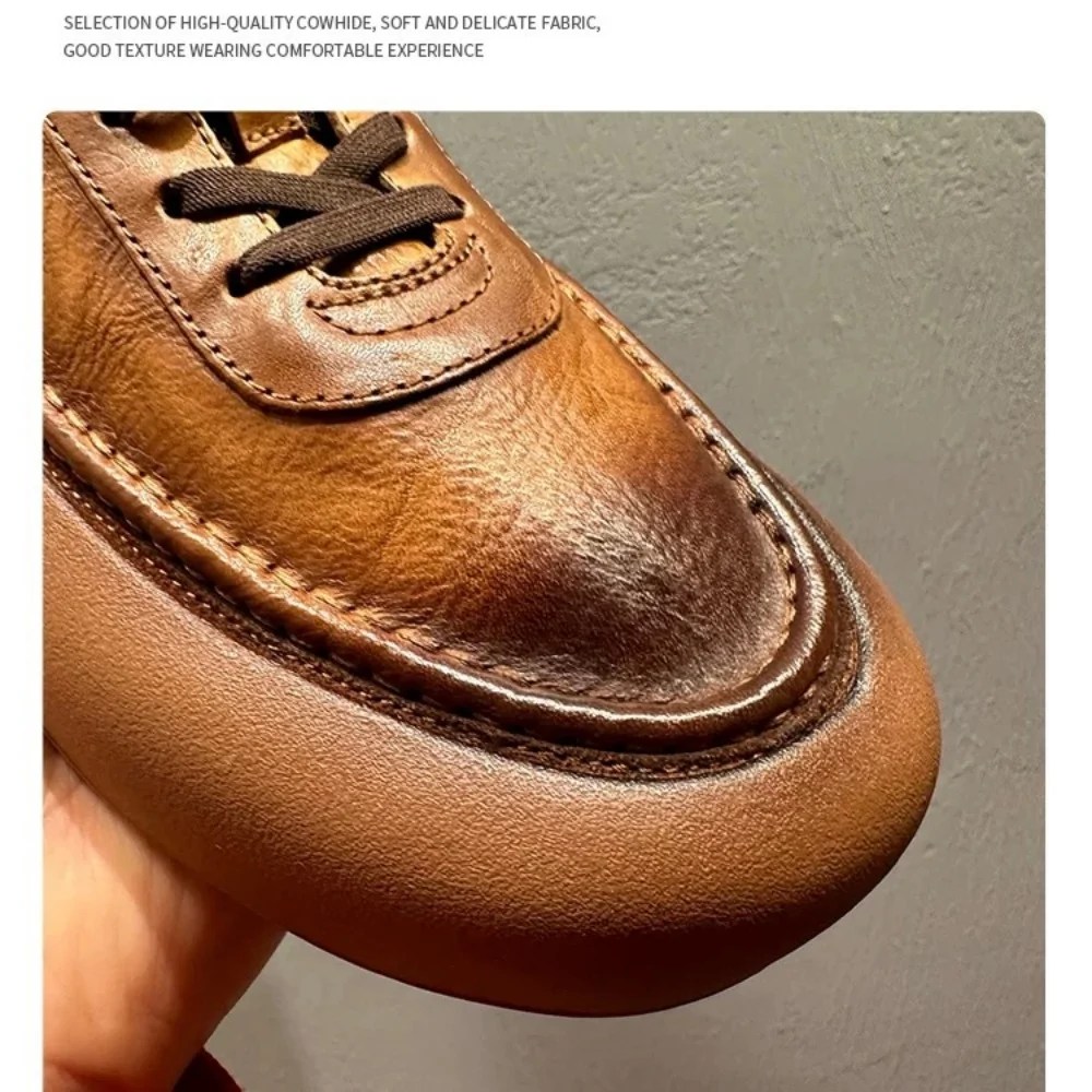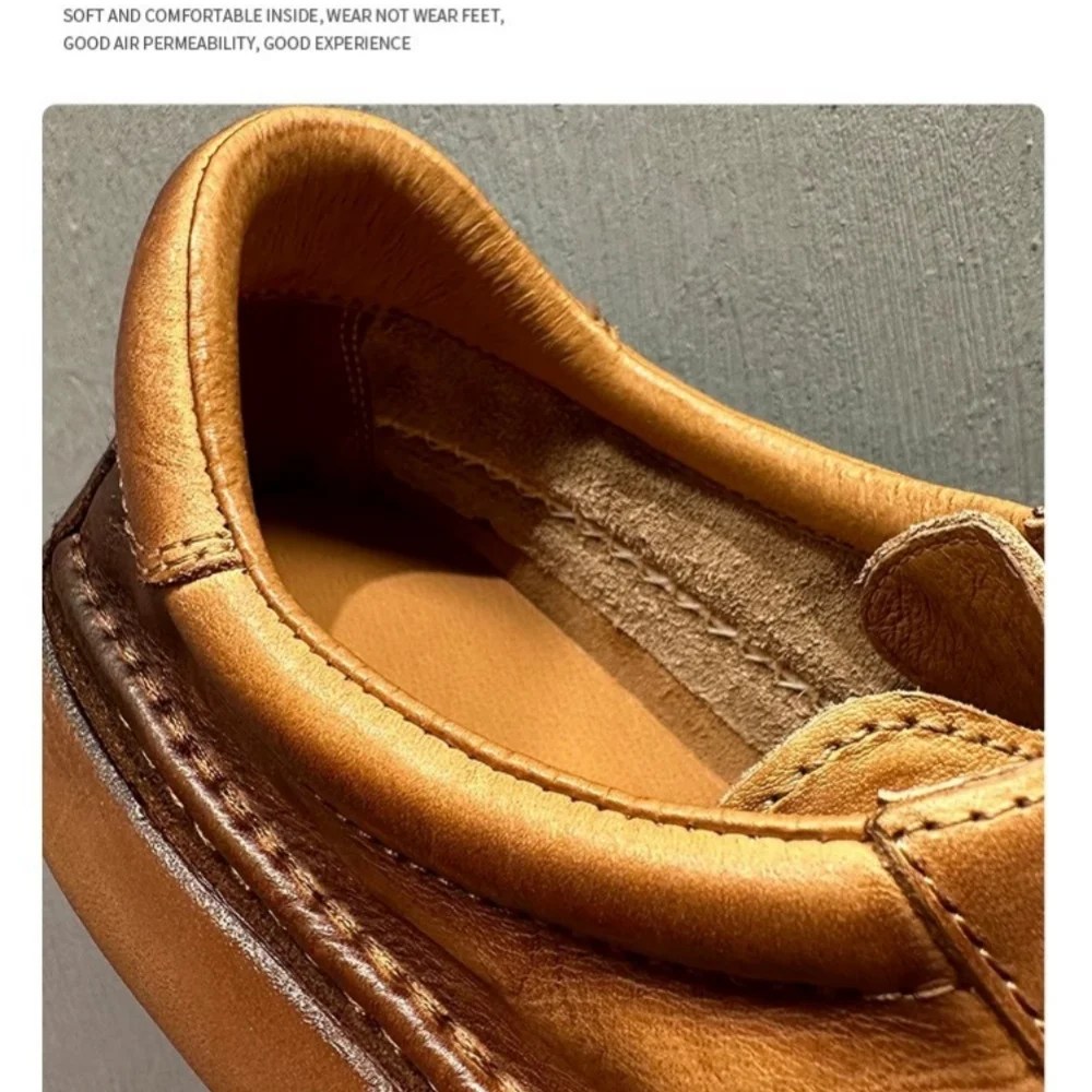 Discover Vintage Heritage™ Handmade Cowhide Casual Shoes by UNITYPUREMAX. Hand-stitched leather design with round toe, thick sole, breathable lining, and height-increasing comfort. Ideal for spring/autumn casual wear.