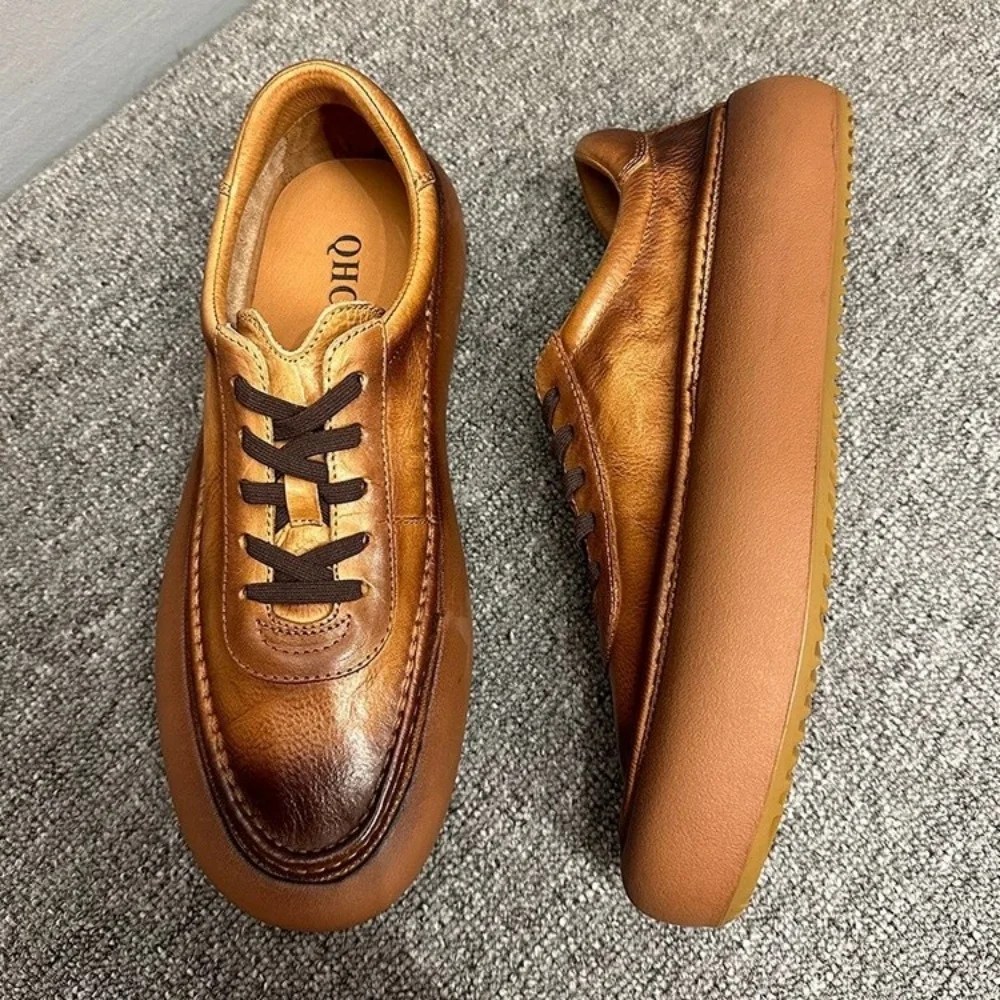 Vintage Handmade Cowhide Casual Shoes for Men | UNITYPUREMAX Thick Sole Round Toe Lace-Up