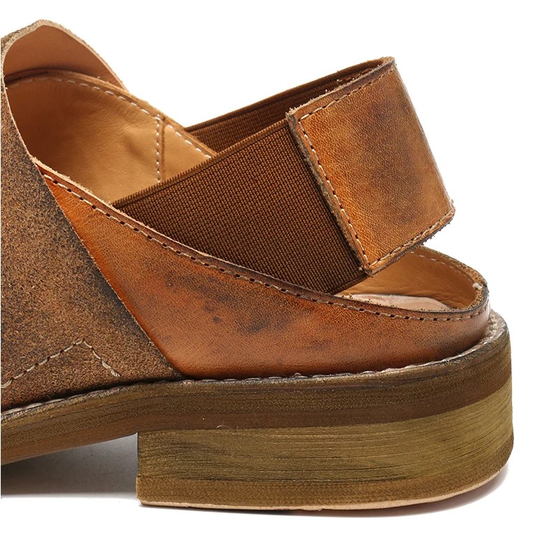 Shop VintageEase™ unisex Handmade Leather Mules. Handmade with calf leather, Goodyear-welted, elastic strap, and rubber outsole. Retro sandal slippers for formal or outdoor casual wear.