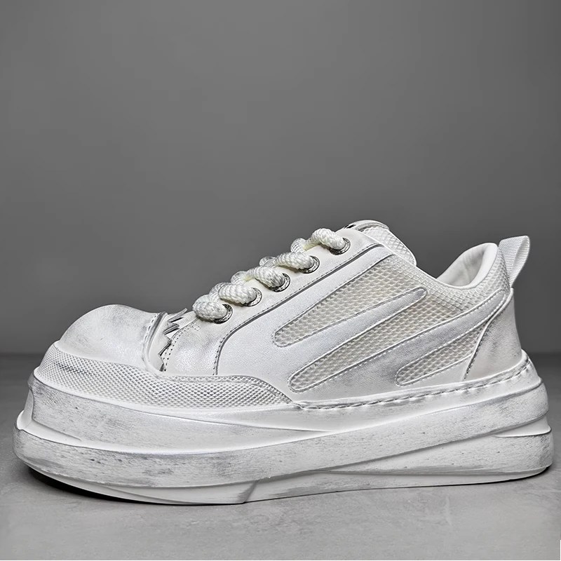BreadStep board shoes, wide genuine leather sneakers, men’s fashion thick sole shoes, breathable mesh cowhide sneakers, height increasing street shoes, European American bread sneakers.