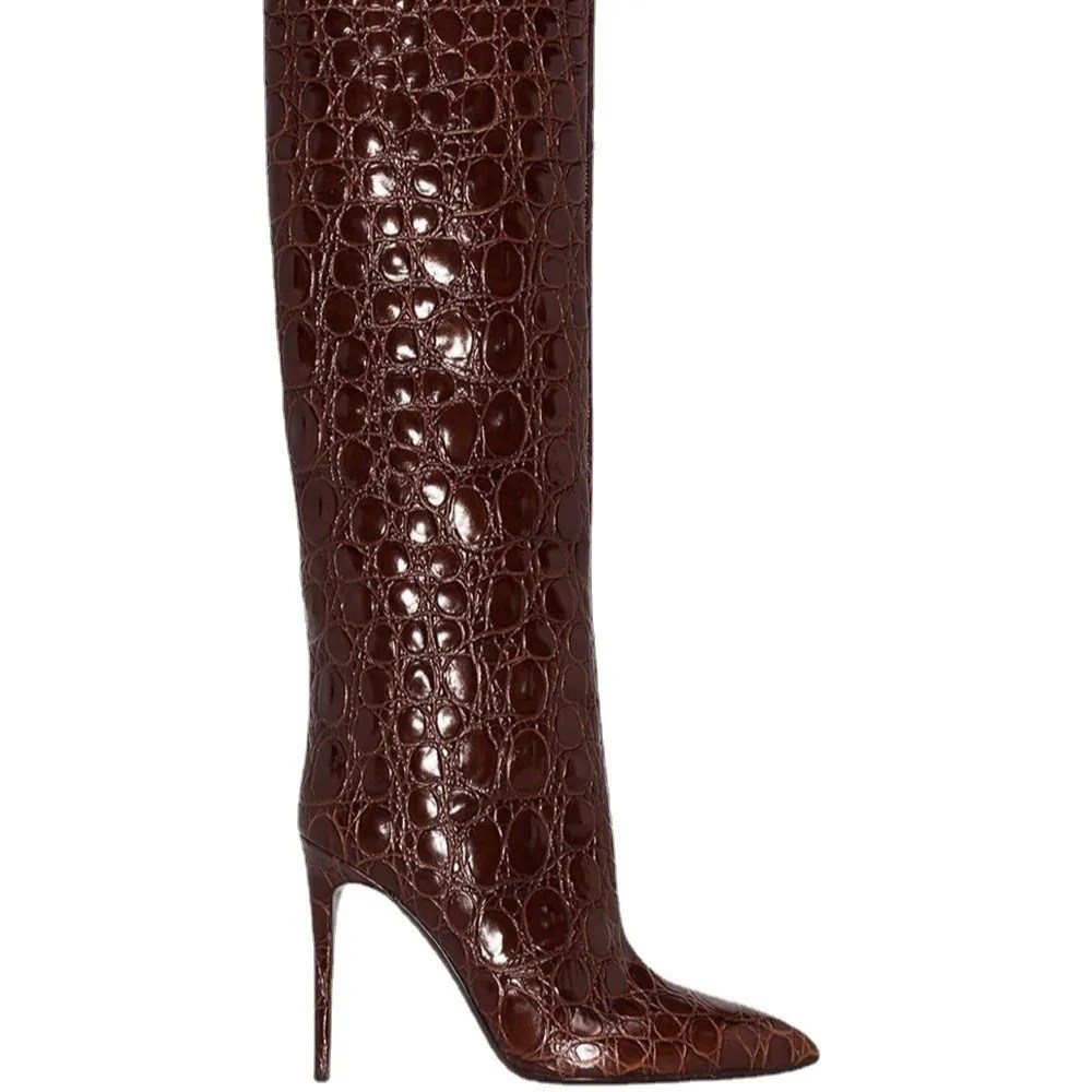 Sexy women’s snake print over-the-knee boots with slim 8cm heel, side zip, and sleek PU leather. Party-ready style in sizes 34–46 by UNITYPUREMAX™.