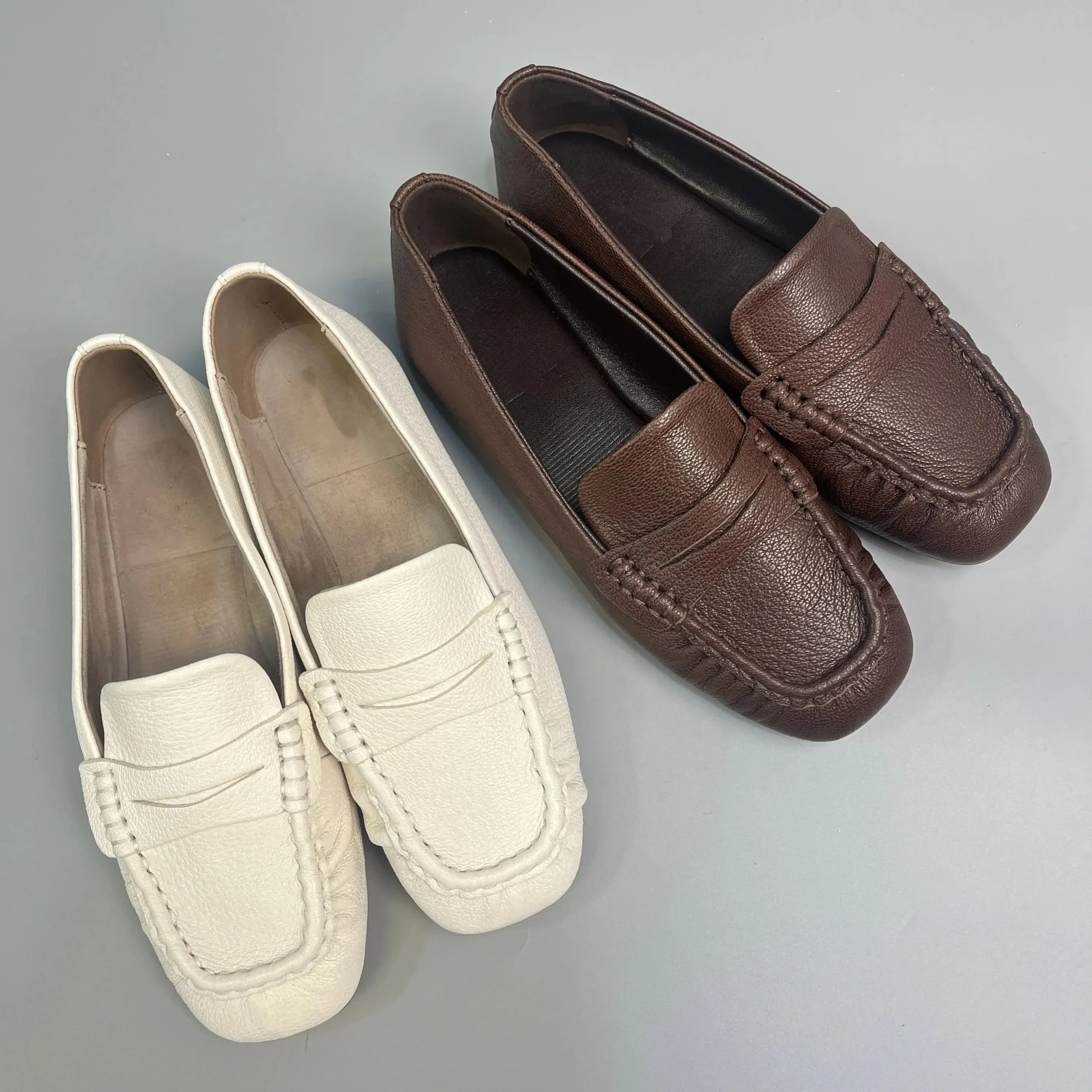 women’s cowhide loafers, square-toe flats women, vintage leather shoes women, slip-on leather loafers, UNITYPUREMAX flats, leather pleated loafers, comfortable travel shoes women, soft leather casual shoes women