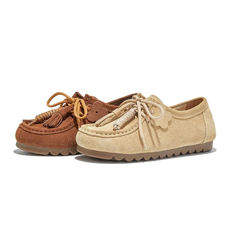 Shop women’s leather lace-up flats made of premium cow suede. Elegant office lady design with round toe, PU lining, and durable rubber outsole. Perfect for spring and autumn casual wear.