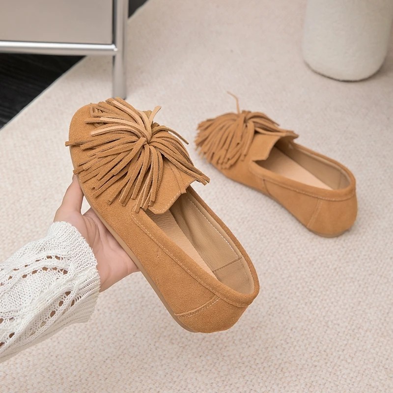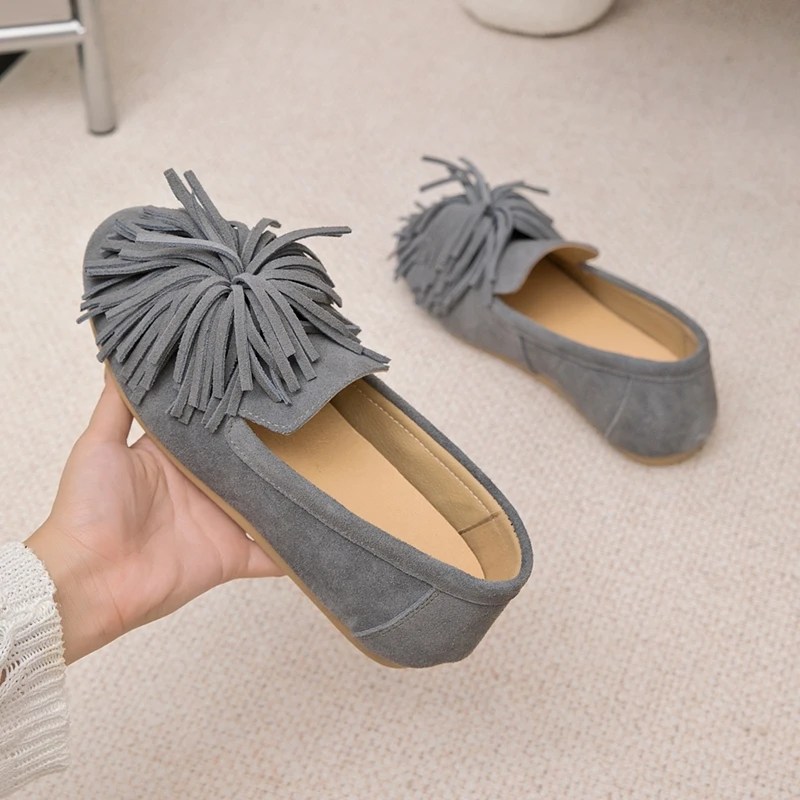 women’s tassel loafers, suede leather ballet flats, genuine leather Mary Jane shoes, large size women’s shoes, slip-on loafers for women.