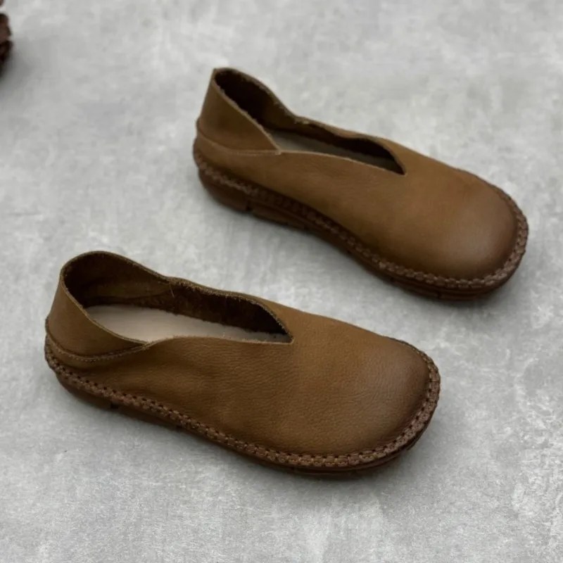 Shop RetroEase™ – Retro women’s Handmade Cowhide Loafers in soft cowhide leather with pigskin insole. Versatile slip-on casual shoes for spring and autumn comfort.