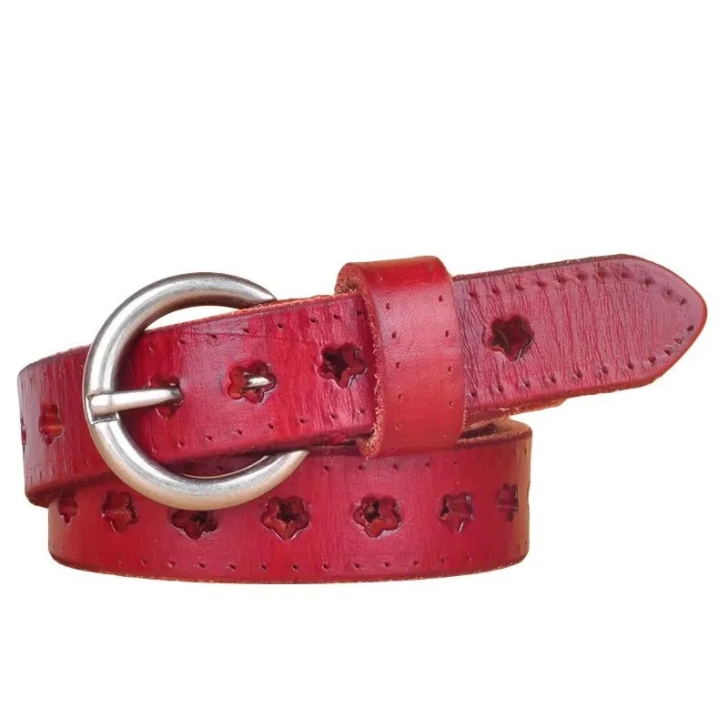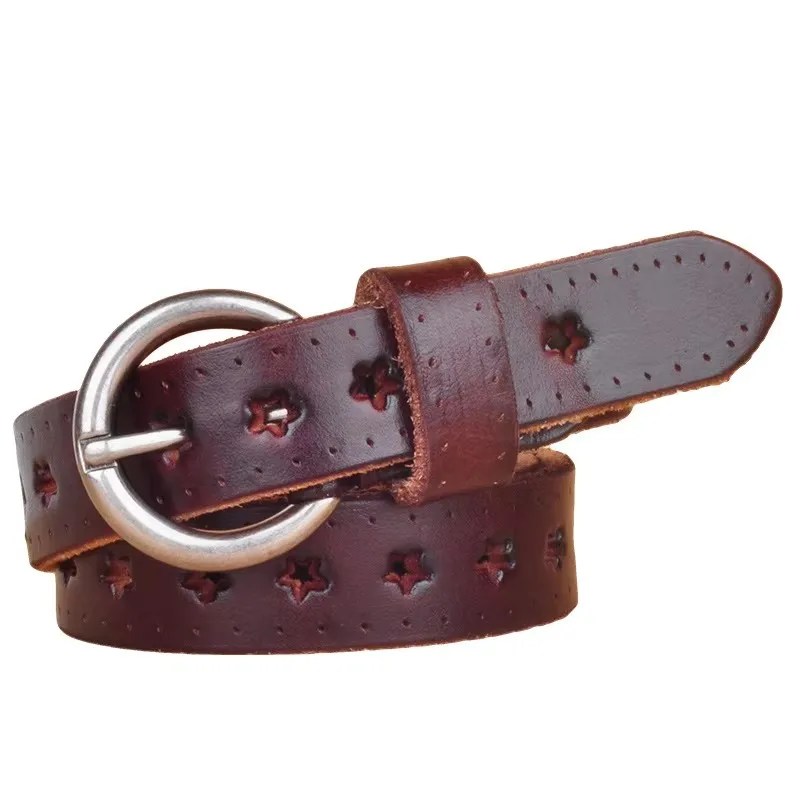 Discover Starella™ designer leather belt for women. 2.3cm wide, genuine cowskin with Hollow Star Genuine Leather Belt. Fashionable, colorful, and perfect for jeans or dresses.