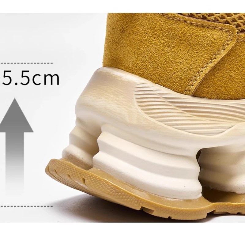 Comfortable Height Increase: 5.5 cm thick sole subtly enhances height while maintaining a lightweight, supportive feel.