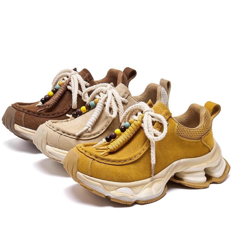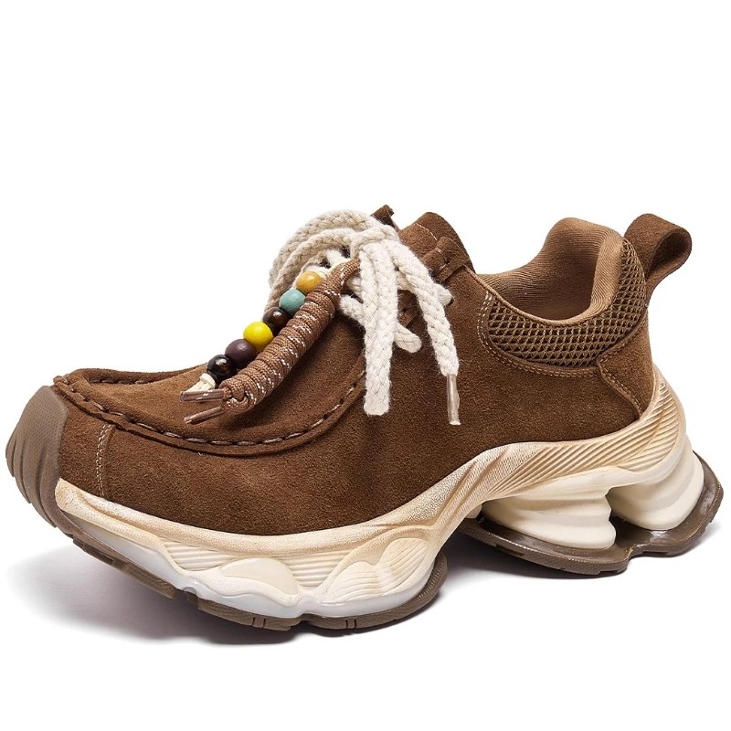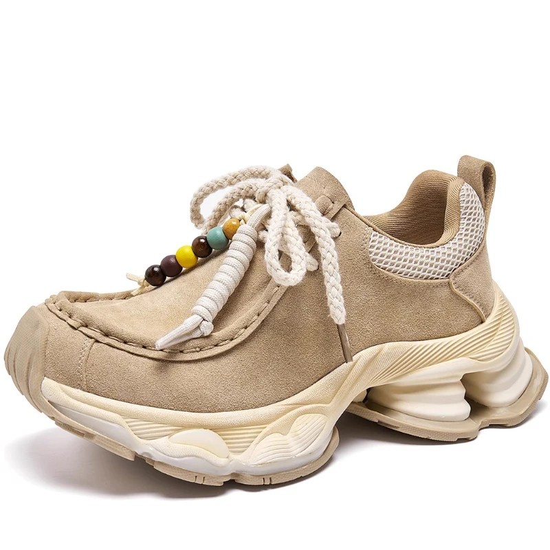 Shop the RetroStep™ Thick Sole Sneakers — Thick Sole Bead String Sneakers retro-inspired women’s leather shoes with a 5.5 cm lift, full-grain leather insole, and lightweight comfort. Perfect for casual everyday wear.