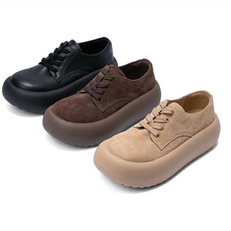 women’s thick-soled shoes, lace-up platform shoes, suede Oxford pumps, wedge casual shoes, women’s large-size shoes, handmade suede shoes, casual spring autumn footwear