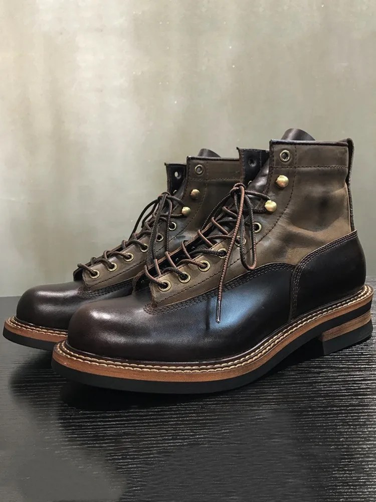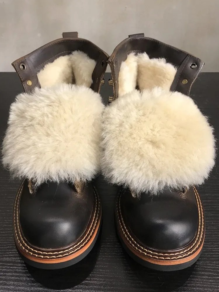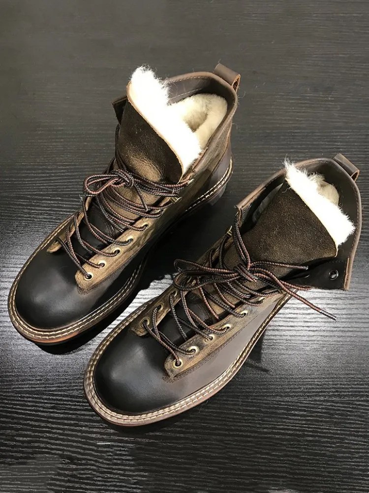 The high-top silhouette, cross-tied lacing, and durable rubber sole ensure protection and traction, while the leather-wool interior provides comfort without bulk. A balance of durability, luxury, and timeless design — made for men who value craft over compromise.